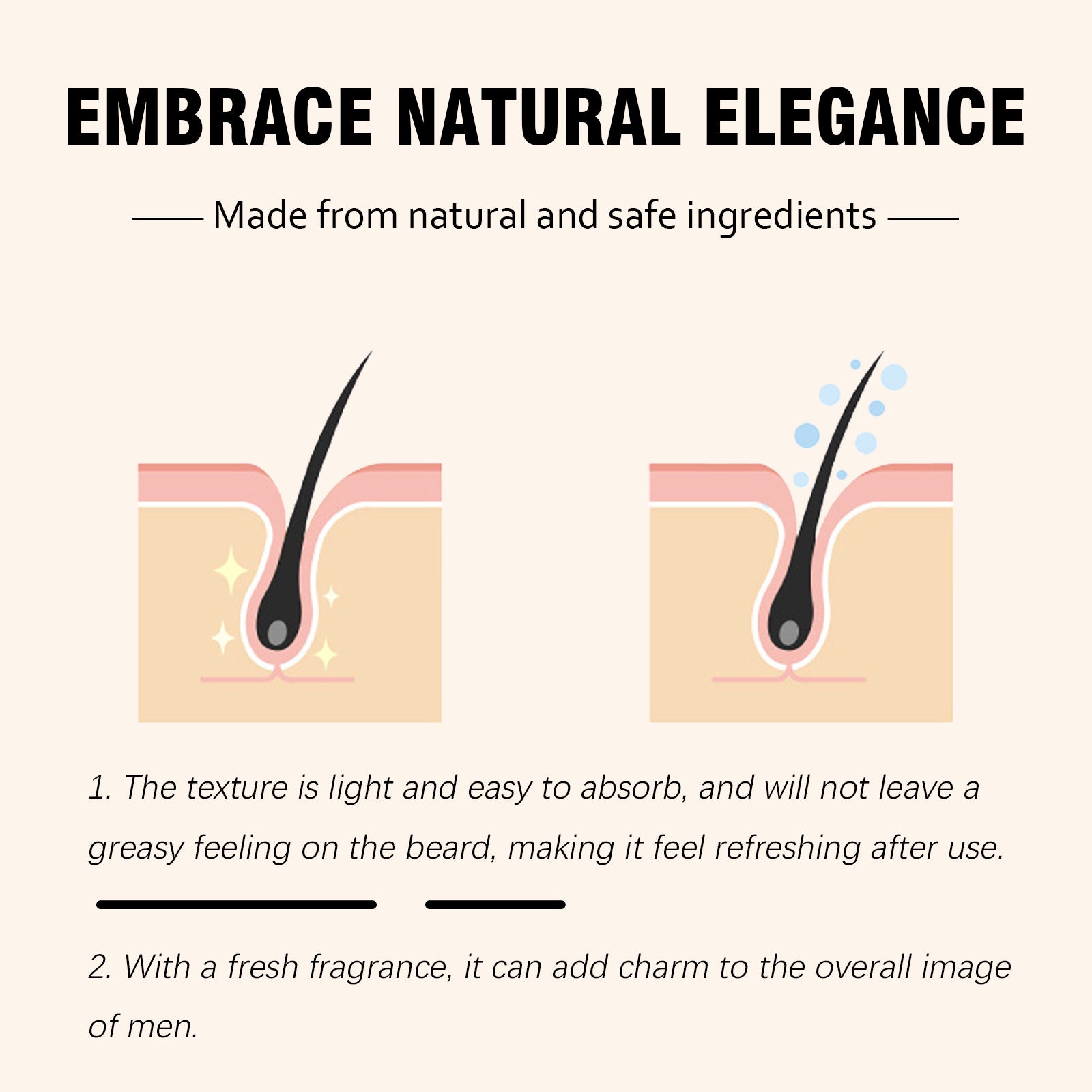 Our beard care oil contains jojoba seed oil, sunflower oil, and almond oil.It penetrates deep into the beard to moisturize and soften dry beards, maintaining a thick, healthy, easy-to-curl beard.It`s simple to use: wash and dry your beard.Apply a small amount of the product to your hands.Apply the oil to the beard and massage gently.Helps reduce beard splitting and breakage, making it easier to comb and keep it neat.